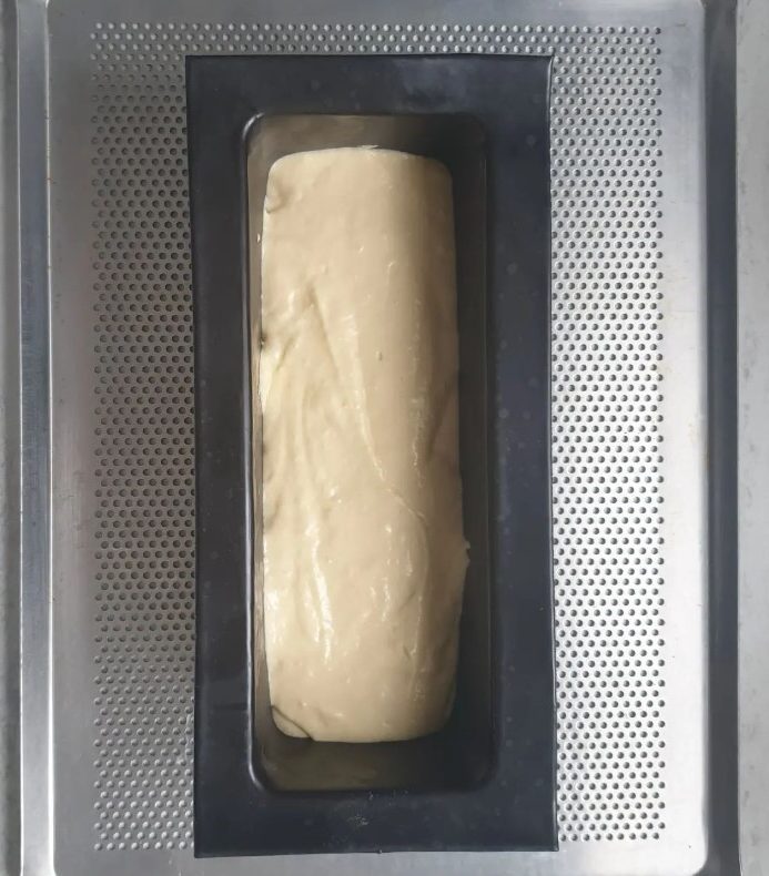 -si vous le faites dans une moule, n’hésitez pas à le beurrer, puis le fariner