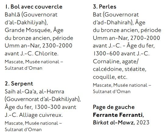 Voyage en terre d’encens est parsemée aussi de photographies. Le musée a fait appel, pour cela, à Ferrante Ferranti, dont le regard sensible nous transporte au pays de l’encens. Les photos de tombes, de paysages omanais, de l’ancienne grande mosquée, ont de quoi nous immerger dans les décors d’Oman.