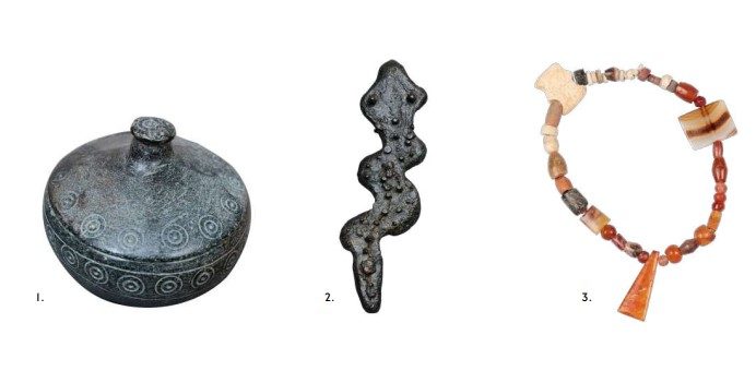 L’exposition est agencée de manière chronologique, nous permettant de remonter dans l’histoire d’Oman. On commence par l’Antiquité, dès le troisième millénaire avant notre ère. Ces vestiges montrent qu’Oman était un pays d’échanges, notamment grâce à son exploitation de gisements de cuivre. Ces échanges ont favorisé l’arabisation et l’islamisation du pays dès le VIIe siècle. On découvre alors des morceaux de carreaux de mosquées, le Coran, mais aussi un poignard omanais, l’emblème national, une boîte à encens, objet très répandu dans le pays car « une bonne odeur révèle la présence du divin », selon la commissaire, un guide nautique, et plein d’autres vestiges qui documentent les habits traditionnels, les avancées médicales, etc.